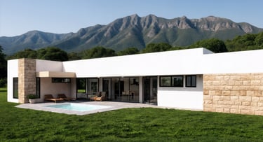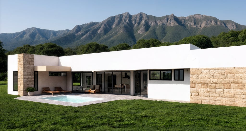 Una vivienda definida por la horizontalidad y la claridad de sus planos, donde volúmenes, aperturas y materialidad construyen una relación directa con el paisaje.