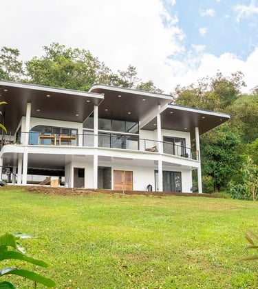 Una vivienda elevada que se abre hacia el paisaje, integrando estructura, vistas y ventilación en una arquitectura clara y bien definida.